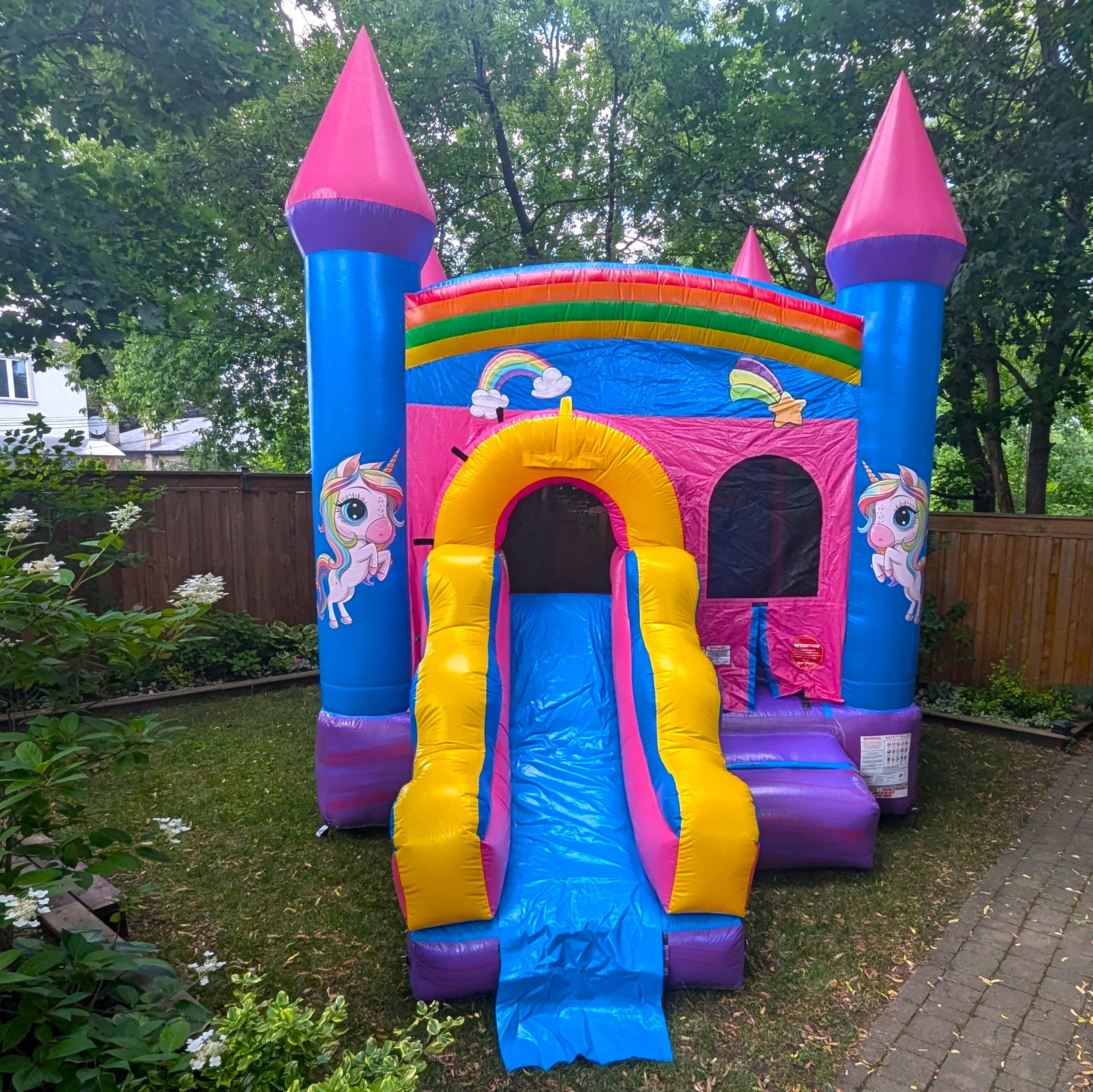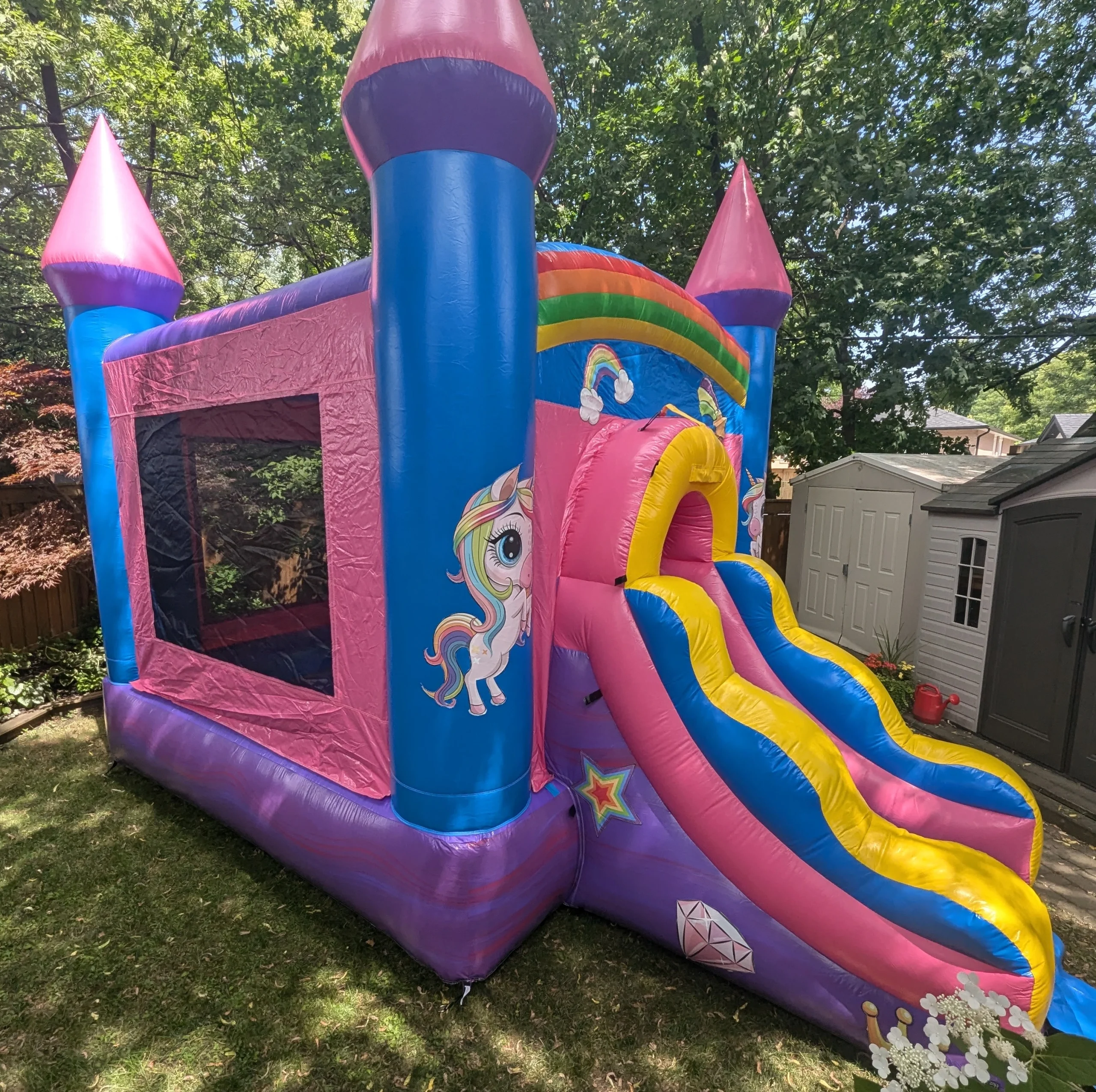 Your child can step into the spacious bouncing area and delight themselves by jumping around and playing with the built-in basketball hoop. Then they can exit the unit by heading down the slide.