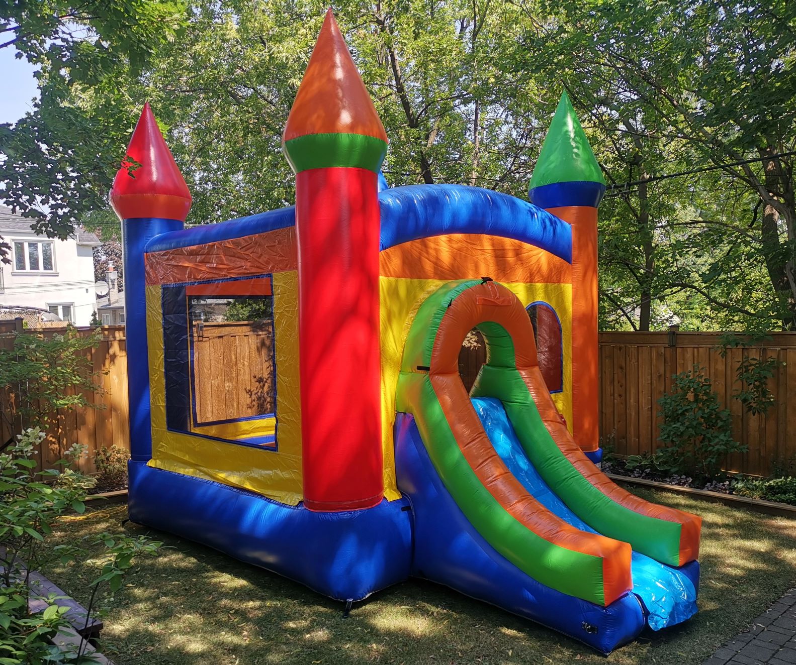 This bouncer is great for birthday party rentals in Toronto. The 6-foot walls with see-through mesh and the single side entrance provide both safety and easy visibility for kid supervision. A pool can be added to the bottom of the slide during a hot summer day. The bouncer holds up to 800 LB in total weight and is also top quality.