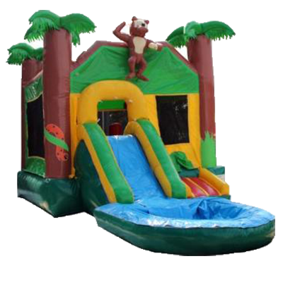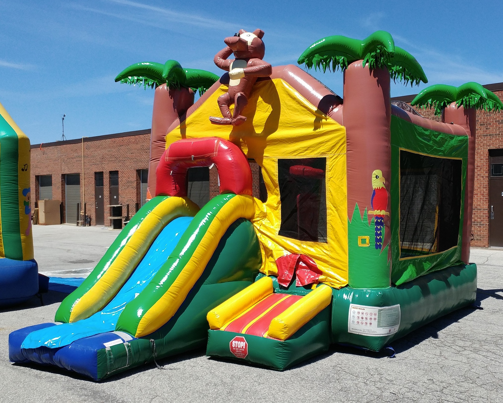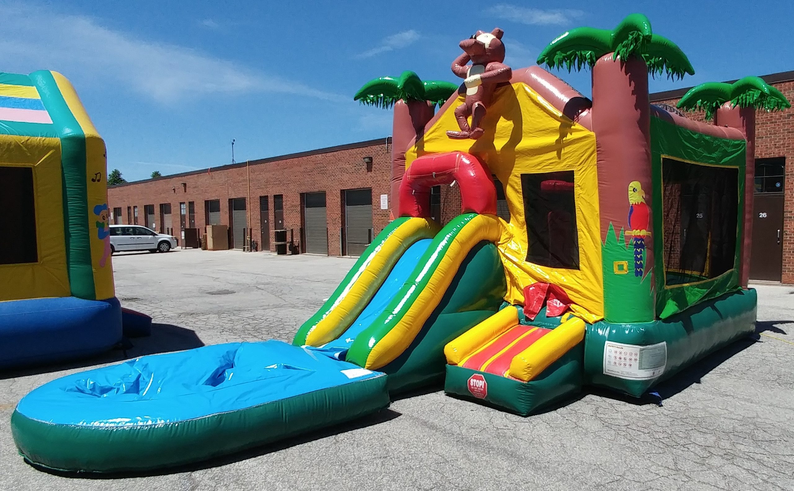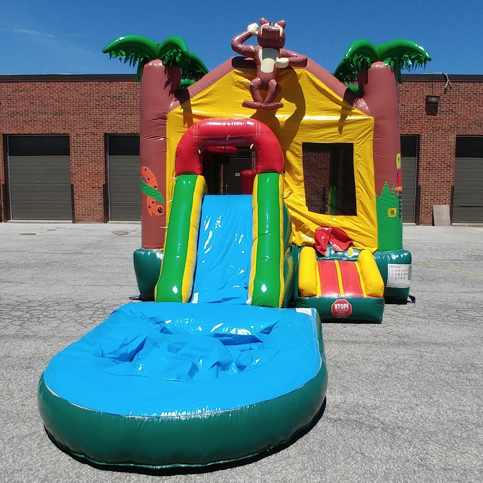 This professional-quality combo bouncer offers a number of entertaining choices. The jumping castle has a 7-foot slide that is big enough for all kids to enjoy. The see-through mesh and the single entrance provide both safety and easy visibility for parental supervision. A pool can be added to the bottom of the slide, which is perfect for a hot summer day. The bouncer holds up to 800 Lbs in total weight and is also top quality.