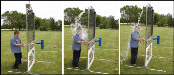 This dunk tank like game features a standing bucket of water above a player’s head that is released when one of 2 targets is hit with the ball. The person that is under the bucket has a chance to defend themselves, making it more interesting for everyone. This is a great game to use on hot summer days.