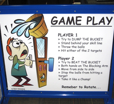 This makes “Beat The Bucket” a great replacement for a dunk tank rental. It is quick and easy to set up and easy to operate; there is no need to wait until the tank fills up. A water hose can be attached to the bucket so it will automatically re-fill water within 10 seconds after each game.